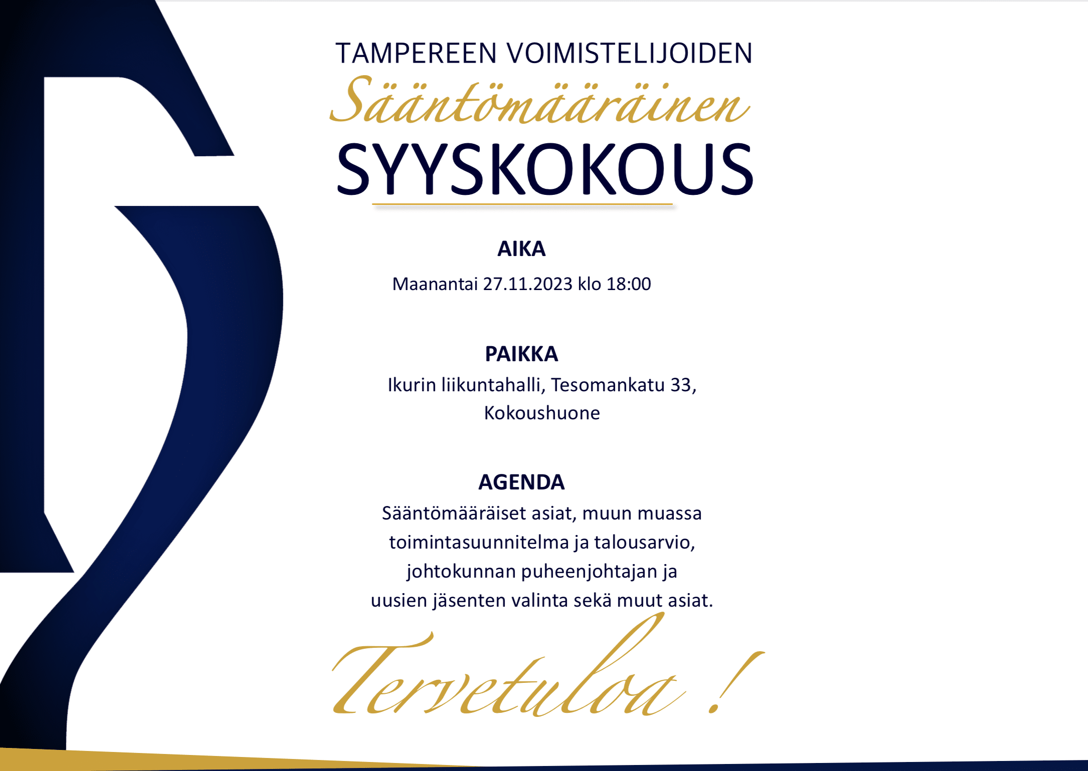 tampereen Voimistelijoiden johtokunta kutsuu jäsenensä sääntömääräiseen kevätkokoukseen.